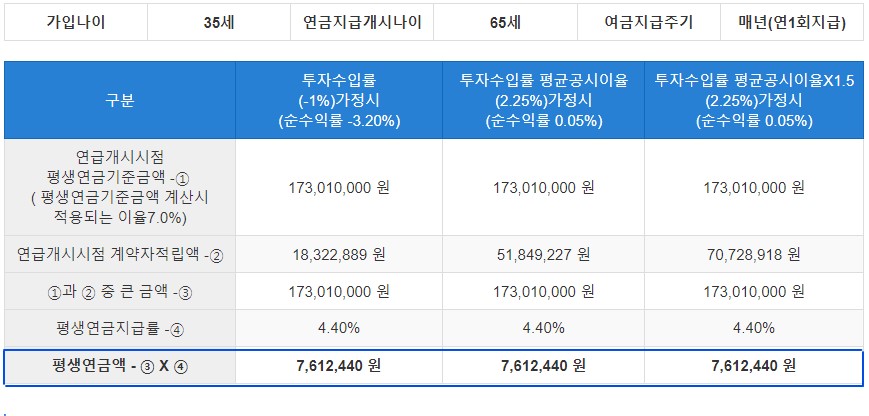 평생연금기준금액 : 17300만원 (원금대비 약 240%)